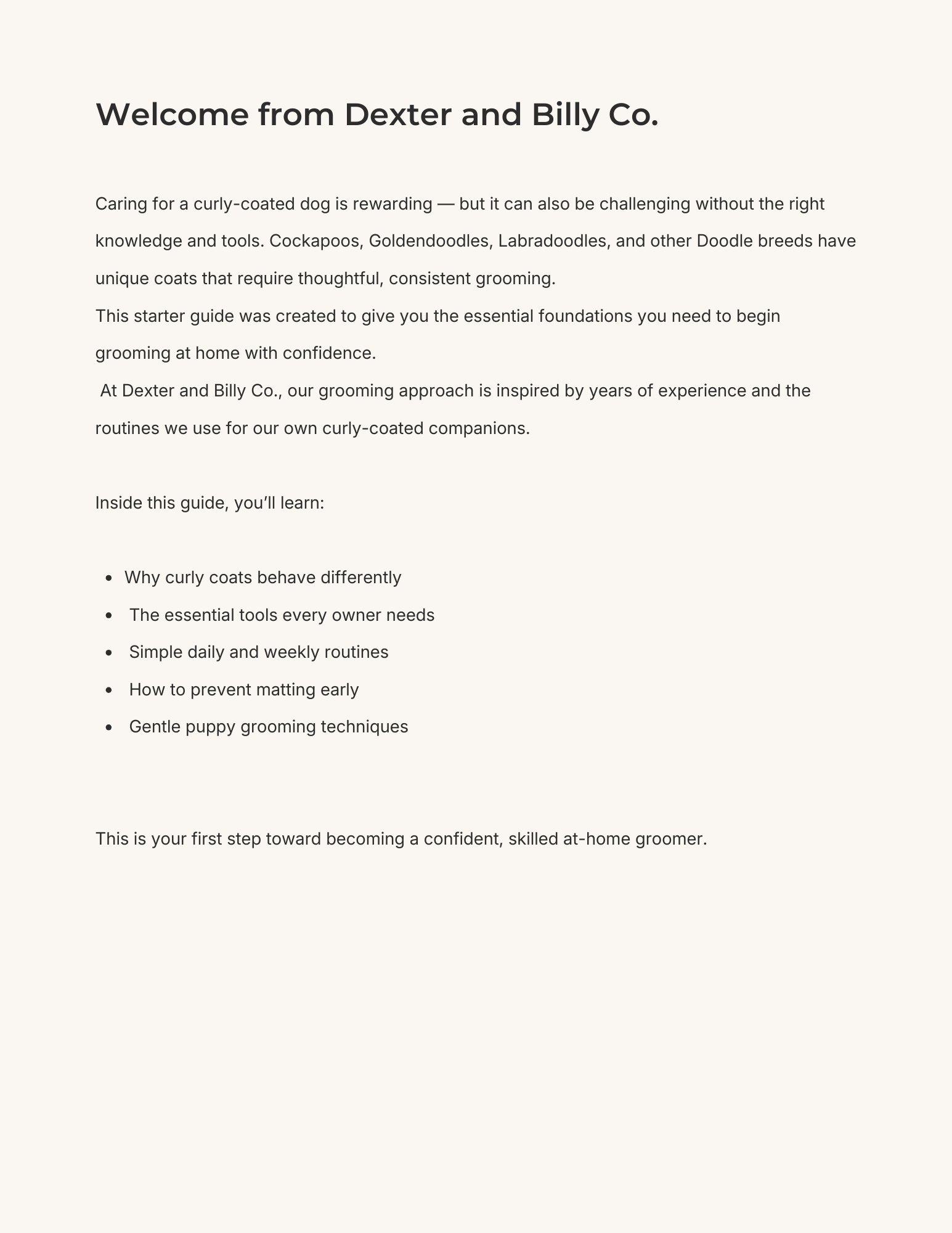 Our guides are inspired by real life with curly-coated dogs and are designed to support owners with practical, thoughtful guidance — without gimmicks or overwhelm.